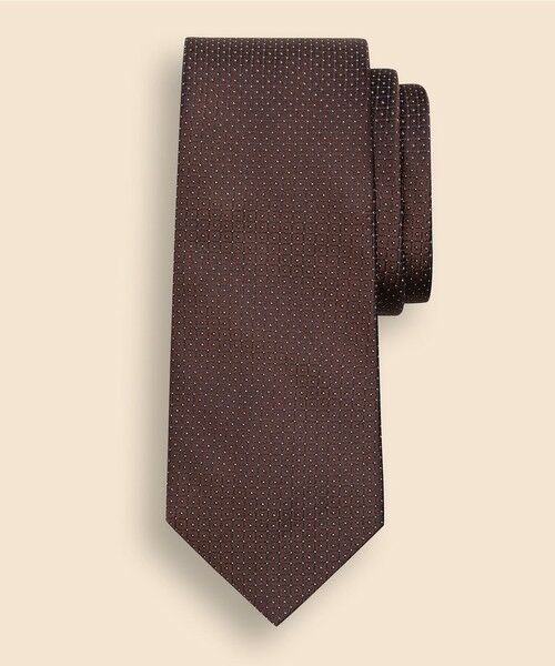 ソリッドタイのようにも見えるシンプルなデザインながら、織模様と繊細なピンドットが調和し、Vゾーンをスタイリッシュに演出します。イタリアのテキスタイルメーカー、Classico Seta社の生地を使用し、日本国内で丁寧に縫製しました。ビジネスシーンにはもちろん、休日のジャケットスタイルまで幅広いコーディネートで活躍するタイです。