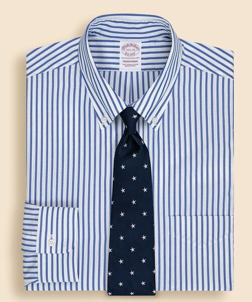 上質なアメリカ産スーピマコットンを100%使用し80年代のブルックス ブラザーズ 6釦シャツをモデルに仕立てたボールドストライプシャツ