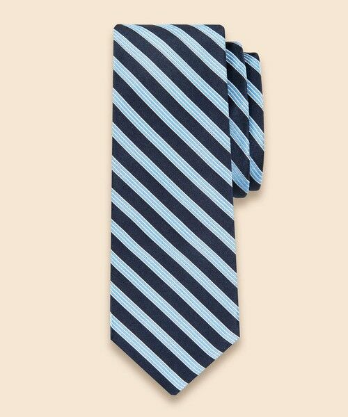 サテン織りのリッチな光沢が、象徴的なBB#1ストライプを一層引き立てます。ビジネスシーンから、休日のジャケットスタイルまで幅広くお使いいただける一本です。ネイビーブレザーとのコーディネートもおすすめです。イタリアのテキスタイルメーカー、Classico Seta社の生地を使用し、日本国内で丁寧に縫製しました。