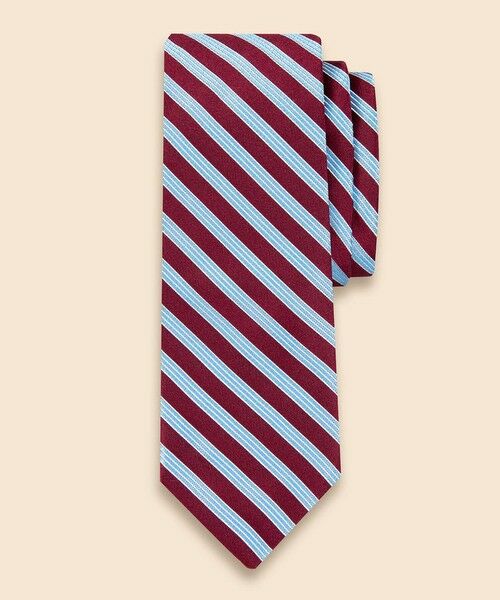 シグネチャーのBB#1ストライプが映える艶やかなサテン織りのタイ