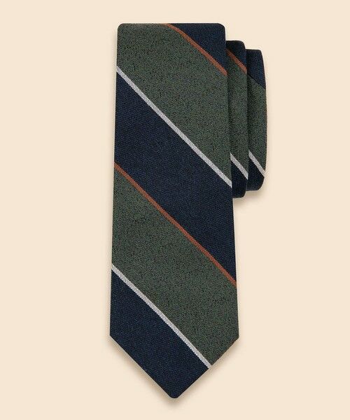 Vゾーンから季節感を演出する秋冬らしい質感とカラーリングが特徴のストライプネクタイ