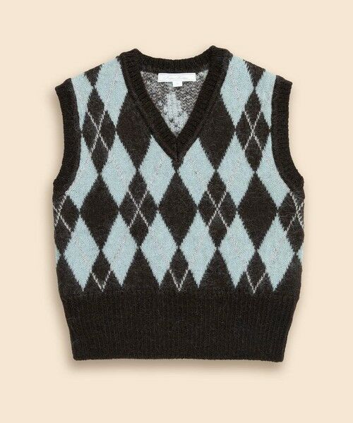 定番のアーガイル模様をチョコミントカラーで表現したシャギーモヘアVネックベスト