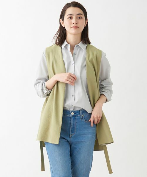 サイドスリットにベルトを配した、軽やかに揺れ動くシルエットが印象的なベスト。ハリのある美しい風合いが魅力的なアイテムは、プレーンなTシャツなどに合わせるだけでもきちんと感のあるコーデに仕上がるのが魅力です。※定価(税込)は、2022年06月29日のセール開始前の店舗における販売価格です。 手洗い可酸素系漂白可タンブル乾燥不可つり干し(日陰)アイロン低温120℃までドライクリーニング可ウェットクリーニング(弱い処理)