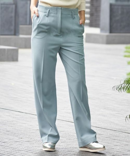 落ち感のあるシルエットが美しいハンサムなデザインに心惹かれるセンタープレスパンツ。程よくゆとりのあるシルエットが今季らしさのあるデザイン。カジュアルなニットなどとラフに合わせてみるのも素敵です。