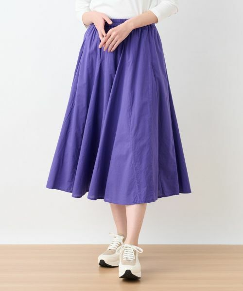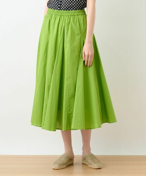 ふわっと広がる分量感のあるフレアシルエットが動くたびに揺らめくスカート。軽やかなテキスタイルでシーズンらしさも満点です。ウエストにはゴムを通しているから優しい着用感で、オンオフ問わず何かと愛用しそう。ハイウエストでスタイリングできるのでタックインすれば脚長見せ効果も期待できます。