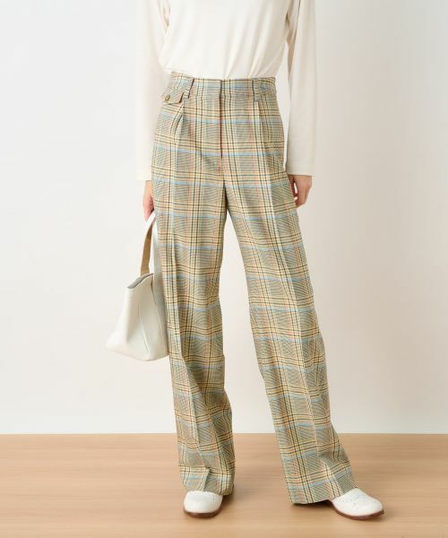 サイズ:7(S),ウエスト66cm,ヒップ94cm,総丈104.5cm,股上29.5cm,股下76.5cm,渡り62cm,裾幅49cm