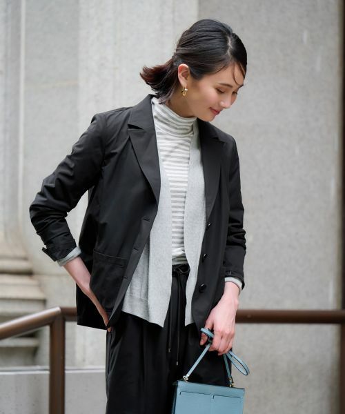 春夏シーズンに最適な接触冷感素材を採用したテーラードジャケット。さらりとした肌触りで、軽やかな風合いを実感できる一着です。アクティブな動作をサポートするストレッチ性のある生地を使用しているので着心地も快適。生地には撥水加工が施されており、少々の雨でも気になりません。単品での着用はもちろん、同素材で仕立てられたパンツとのセットアップで統一感のあるコーディネートを楽しむのもおすすめです。スタイリッシュなビジネスカジュアルからリラックスした休日スタイルまで、幅広いシーンで活躍してくれそうなアイテムです。