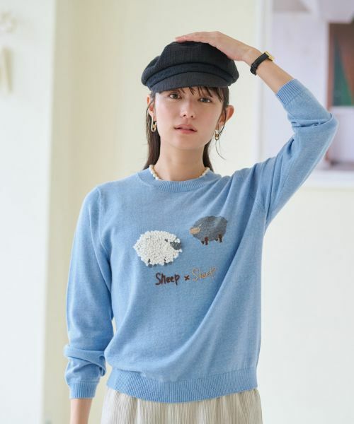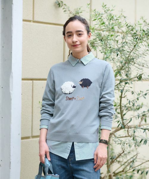 “Sheep×Sleep”の刺繍と羊をデザインが、思わず微笑みが誘われるユーモラスなデザインのクルーネックニットプルオーバー。もこもことした立体感のある羊のモチーフが、触れるたびに心ときめく、可愛らしさ溢れる一枚です。すっきりとしたシルエットでワイドパンツなどボリューム感のあるボトムスともバランスよくコーディネートできます。シンプルになりがちな着こなしにひと味違ったアクセントを加え、日常のスタイルに遊び心を添えるトップスです。