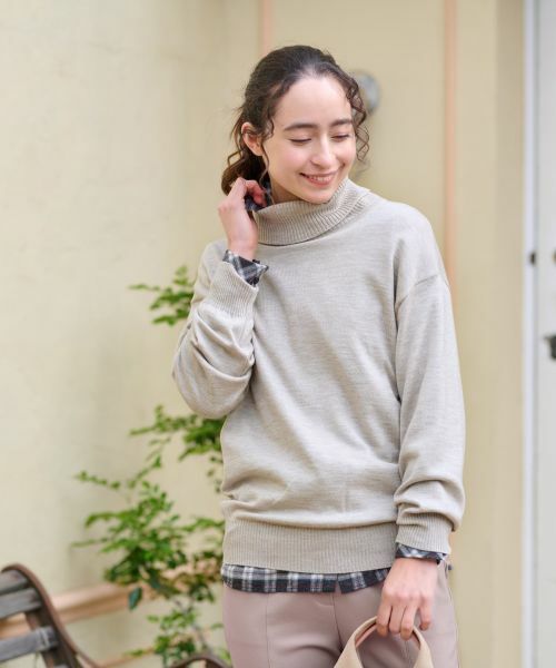シルクをブレンドした滑らかな肌触りのタートルネックニットプルオーバー。首元にボリューム感を持たせたデザインが愛らしく、女性らしい柔らかな印象を引き立てます。ドロップショルダーでゆとりを作り、袖周りをストレスフリーに仕上げ、細かい編地が生むフィット感のよさと軽やかさで快適な着心地をキープ。カジュアルにもきれいめにもマッチし、インナーとしてもコーディネートの主役としても幅広く活躍しそうなアイテムです。