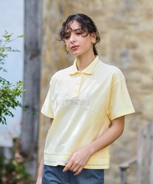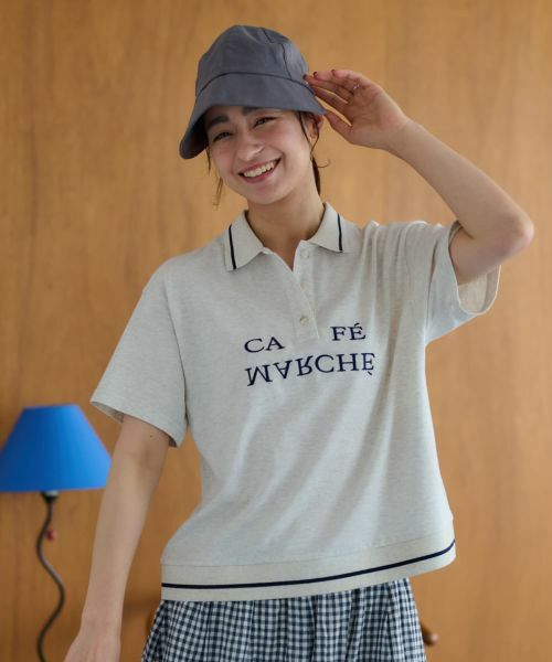 フロントにフランス語で「CAFE MARCHE(カフェ・マルシェ)」の刺繍、バック左ショルダーにイラスト刺繍を施した遊び心あふれるポロシャツ。素朴な風合いが心地よい、ナチュラルタッチのコットン素材を使用しています。襟元と裾、袖口にはラインをあしらい、さりげないアクセントに。肩の力を抜いて着られるゆったりとしたシルエットで、カジュアルながらもこなれ感のある着こなしが叶います。デイリーはもちろん、旅先やリラックスシーンにもぴったりな一枚。