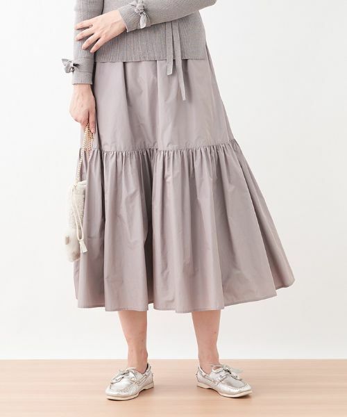 ギャザーでふんわり切替えた、スイートなルックスに心惹かれるロングスカート。ハリのある美しい風合いが上品さのあるデザイン。オーバーサイズのニットなどを合わせて軽やかに着こなすのもオススメです。※ウォッシャブル: 可※定価(税込)は、2022年01月02日のセール開始前の店舗における販売価格です。手洗い可酸素系漂白可タンブル乾燥不可つり干し(日陰)アイロン低温120℃までドライクリーニング可ウェットクリーニング(弱い処理)