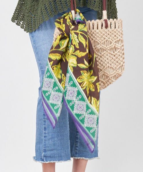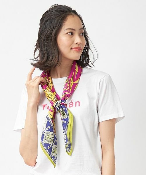 滑らかな光沢を持つ上質な繊維とコットンをブレンドした美しい光沢に心惹かれるスクエアスカーフ。色鮮やかな配色が目を引く繊細なプリントが特徴で、旅先でのコーディネートのポイントになるデザインです。無地のトップスやジャケットコーディネートに取り入れて、華やかな旅の装いを。※定価(税込)は、2022年06月29日のセール開始前の店舗における販売価格です。