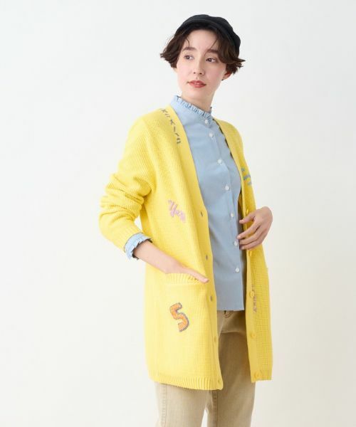 カラフルな刺繍やワッペンをランダムに散りばめたポップなデザインで、コーディネートをユーモアたっぷりに盛り上げてくれるロングカーディガン。ハンド刺繍ならではのぬくもりが感じられる一枚。すとんとした無駄のないシルエットだから、ルーズになることなくすっきりとしたレイヤードに仕上がります。ニットやシャツ、ワンピースとの重ね着にオススメのアイテムです。
