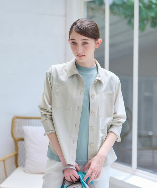 編地と織地を巧みに切り替えることで表情に変化をもたせた、新鮮なデザインのブラウス。シンプルな単色無地でまとめているので、モダンな印象のスタイリングを楽しめます。柄物のボトムスとコーディネートすればお洒落の選択肢も広がりそうです。両胸にバランスよくレイアウトされたパッチポケットが存在感を発揮するアクセントに。これからの季節の様々なシチュエーションでひと味違った着こなしができる大人顔のトップスです。