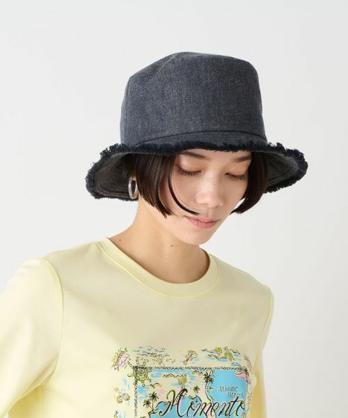 ほんのりモードに映える、フリンジ付きハット。しっかりとした肌当たりのよいコットン生地を使用しており、ブリム縁にぐるりと施されたフリンジがアクセントに。シックなトーンでまとめているから、カジュアルにもきれいめにもすんなり馴染みます。程よい存在感があり、小顔見せ効果も期待できそう。いつもの着こなしにさりげなく洒落感をプラスしてくれる、デイリースタイルの名脇役です。