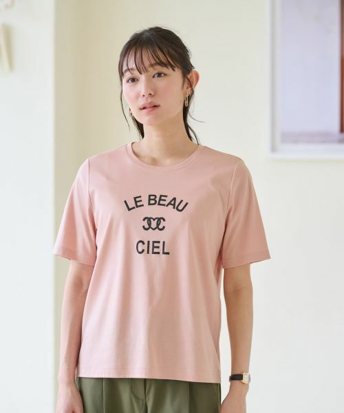 フランス語で「LE BEAU CIEL(美しい空)」と綴られた、フロントのロゴプリントが目を惹く半袖Tシャツ。ラインストーンの煌めきがさりげないアクセントに。肌触りのよいやや薄手のコットン生地を使用しているので、これからの季節のデイリー使いに最適。デニムパンツと合わせてカジュアルに仕上げるのはもちろん、フレアスカートでまとめたフェミニンなコーディネートにもおすすめです。シンプルながらも洗練されたデザインでさまざまなシーンで活躍し、コーディネートの幅を広げてくれる頼れるアイテムです。