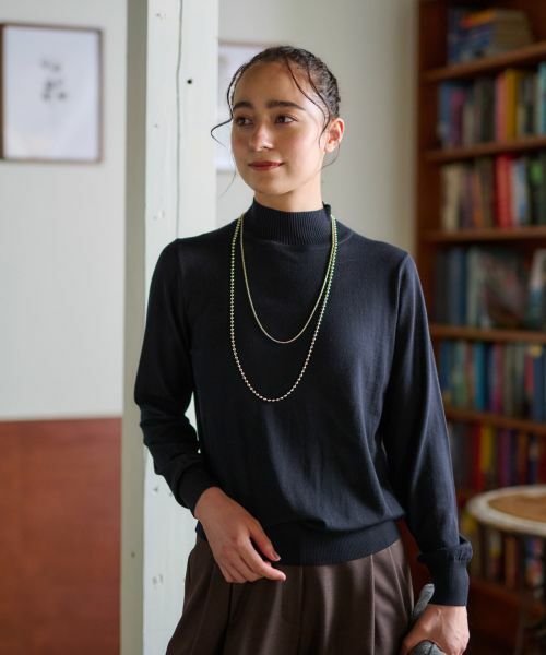 程よくフィットしつつ、身体からふんわりと離れる絶妙なシルエットが魅力のハイネックニットプルオーバー。ネック部分は折り返しのないすっきりとしたデザインで、シンプルながらも上品さをキープ。一枚での着こなしでもエレガントな印象を与え、洗練されたコーディネートを楽しめます。ワンピースやシャツのインナーとしても重宝し、レイヤードに取り入れることで、こなれ感のある上級者らしいスタイルが完成します。■関連4400378 カーディガン------------------------------------着用シーズン:秋伸縮性:あり透け感:なしポケット:なし生地の厚さ:やや薄手-------------------------------------※商品の色味は、撮影場所や光のあたり具合、お客様のお使いの機器により色味が違って見える場合がございます。予めご了承ください。家庭洗濯不可漂白不可タンブル乾燥不可アイロン低温160℃まで石油系溶剤ドライクリーニング弱ウェットクリーニング不可