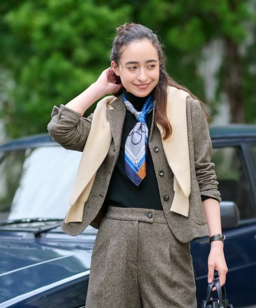 クラシックな魅力が際立つ、ソフトな風合いのツイード生地で仕立てた3つボタン仕様のテーラードジャケット。端正なシルエットとシンプルかつ上品なデザインが特徴で、トレンドに左右されることなく、長く愛用できる一着です。同素材のスカートと合わせれば、セットアップ風のコーディネートが完成し、統一感のある洗練されたスタイルを楽しめます。ミニマルながらも存在感のある仕上がりで、カジュアルからビジネスまでさまざまなスタイリングに自然と溶け込みます。