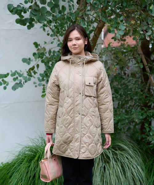 軽量で温かく、これからの寒い季節にぴったりのキルティングコート。ドロストで調整可能なフード付きのデザインがカジュアルな雰囲気をプラスし、さりげなく防風効果も発揮。フロントはスナップボタン×ファスナーでしっかりと閉じられます。複数のポケットを備えており、実用性も高く持ち物の収納に便利。シンプルでありながらも存在感のあるデザインで、デイリーからアウトドアまで幅広いシーンで活躍するアウターです。