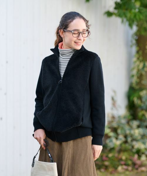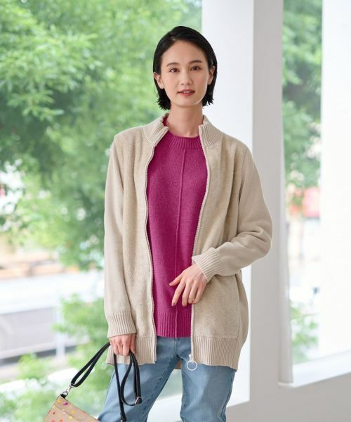 リラックス感のあるシルエットに、女性らしい上品なカラーを取り入れたハイネックカーディガン。もこもことした愛らしい素材感が優しい温もりを伝え、大人っぽい雰囲気でデザインされているため、カジュアルになりすぎず洗練された印象を演出します。明るいトーンのインナーや柄物のワンピースなど、普段使いのアイテムにさっと羽織るだけで、季節感を感じさせる旬のコーディネートが完成。デイリーにもお出かけにもフレキシブルに活躍する一着です。
