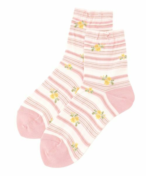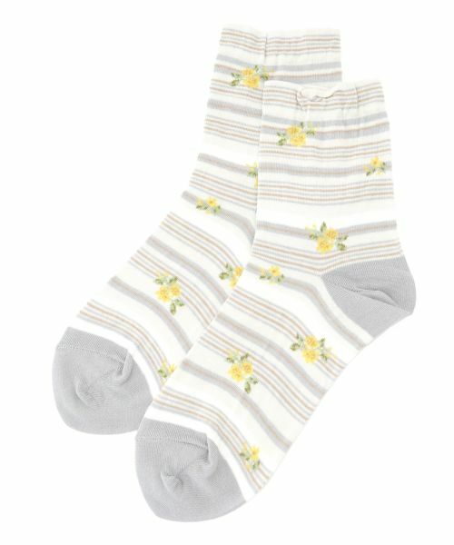 柔らかな色合いで表現されたリズミカルなマルチボーダーに、フラワー柄が華やかさを添えるショートソックス。足元にちょっとした可愛らしさを添えるデザインで、カジュアルなコーディネートのアクセントにもぴったりです。素材はコットンブレンドの絶妙なバランスで、柔らかく快適な肌触りを実現しました。通気性に優れつつ、しっかりとしたフィット感が足を包み込み、一日中快適な履き心地をキープします。-------------------------------------※商品の色味は、撮影場所や光のあたり具合、お客様のお使いの機器により色味が違って見える場合がございます。予めご了承ください。