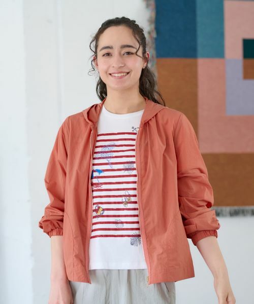 ほんのりシワ感のあるナイロン素材で仕立てたフーデッドブルゾン。見た目にもニュアンスがあり、軽やかで扱いやすいのが魅力。表面には撥水加工を施しているので、急な小雨や水はねにも心強く、季節の変わり目に頼れる一着です。シルエットには程よいゆとりを持たせており、身体を包み込むようなやさしいラインに。カジュアルなデイリーコーデはもちろん、フェミニンなワンピースやスカートと合わせてミックススタイルを楽しむのもおすすめです。