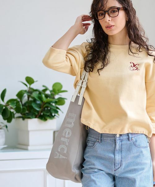 しっかりとした素材で仕立てたショルダーバッグ。側面には「merci(ありがとう)」の文字を刺繍し、“i”の部分をエッフェル塔のモチーフで表現しています。さりげなく遊び心のあるルックスが、シンプルながらもパリのエスプリを感じさせるエッセンスに。開口部はファスナーによりスムーズに閉じられるので使いやすくなっています。デイリーからお出かけまで幅広いシーンで活躍する、実用性とデザイン性を兼ね備えたアイテムです。
