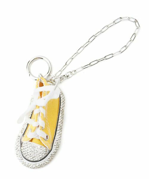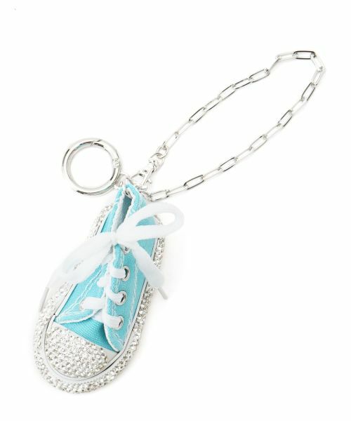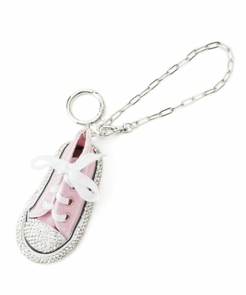 ビジューが煌めく、デコラティブなスニーカーモチーフが目を惹くチャーム。これからの季節にぴったりな明るめのカラーがポイント。遊び心あふれるデザインながらも、上品な輝きが大人のスタイルにマッチします。チェーンストラップとリングの2種類の留め具が付いているため、バッグやポーチに付けるのはもちろん、キーリングとしても活躍。リング部分によく使う鍵をまとめておくのも便利です。