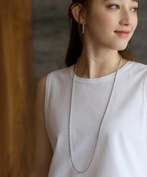 エレガントにきらめくボールチェーンのロングネックレス。装飾のないシンプルなデザインながら、程よいボリューム感が存在感を高め、旅先での様々な装いに華を添えます。アジャスターにあしらったハートが、旅の楽しい気分を象徴するような可愛らしいワンポイントに。
