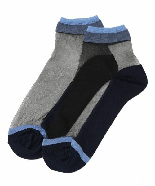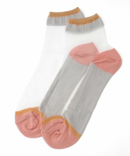 透け感のある風合いが美しい表情を見せる配色クルーソックス。履き口や先端を飾る配色デザインが目を引く、旅先でのコーディネートのポイントになるアイテムです。フェミニンなワンピースとサンダルを合わせたリゾートスタイルにもおすすめです。