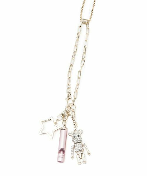 可愛らしいクマのモチーフ、スポーツシーンを感じさせるホイッスル、星のチャームが付いたネックレスです。旅の気分や行き先に合わせてチャームを付け替えられるので、一つのネックレスで様々な表情を楽しめます。