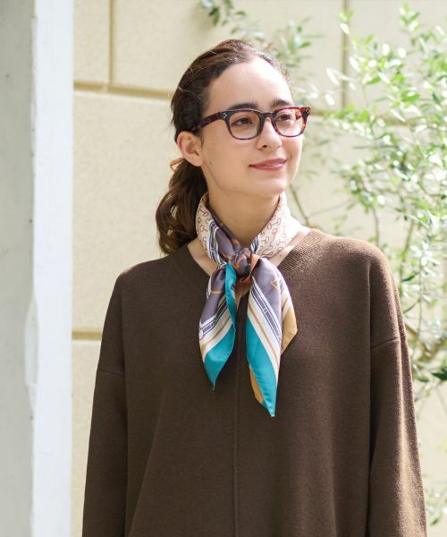 様々なアレンジが楽しめるスカーフ。靴にあしらわれるビットの模様が散りばめられた、リッチなデザインは、旅の装いに上品なアクセントを加えます。首元のお洒落やバッグのアクセントとして、旅の気分を高めて。家庭洗濯不可漂白不可タンブル乾燥不可アイロン低温160℃まで石油系溶剤ドライクリーニング弱ウェットクリーニング不可