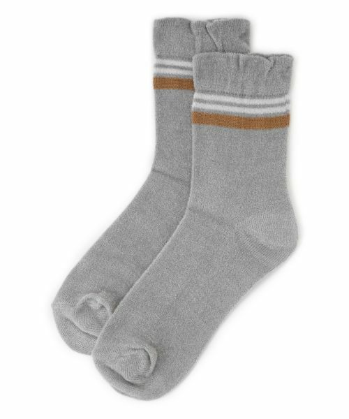 ふわふわとした起毛感のある素材が季節感を醸し出すクルーソックス。トップにあしらった配色ラインが、ヘルシーでアクティブな雰囲気を添え、旅先での軽快な足取りをサポートしてくれそうです。シンプルなコーディネートのポイントにもおすすめの一足です。
