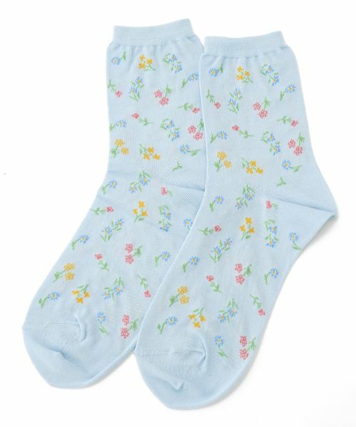 ナチュラルな雰囲気を感じさせるミニフラワー柄が広がるソックス。コットンを主とした生地に仕上げた、薄手の軽やかな風合いが魅力のアイテムです。旅先でのダークトーンのパンツやスカートに合わせれば、足元に可憐なアクセントを添えてくれます。