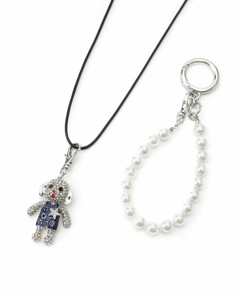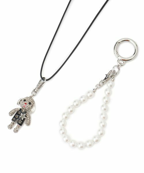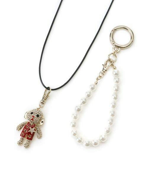 キラキラのストーン調パーツをたっぷりとあしらったドッグチャームが目を引くネックレス。パール調のキーホルダーもセットになった、ドッグチャームを付け替えて楽しめるアイテムです。旅の気分に合わせてアレンジしたり、バッグチャームとして旅のお供にするのも素敵です。