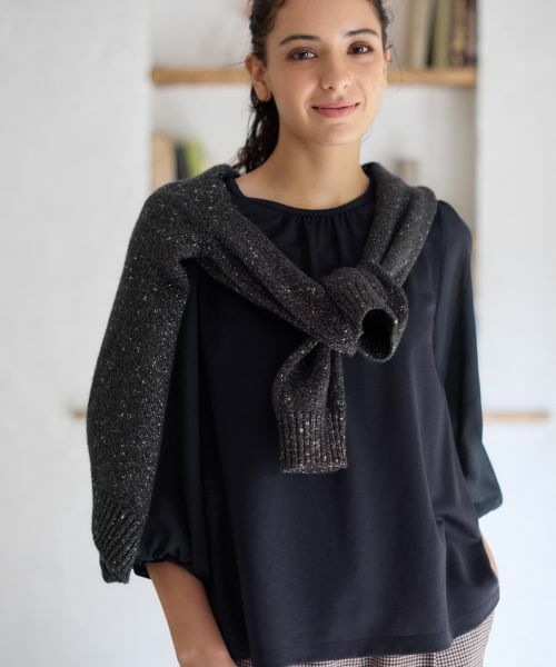 快適な着心地と華やかさを両立した、異素材コンビネーションのプルオーバー。袖には軽やかな生地を使用しており、ふんわりとしたボリューム感が女性らしい雰囲気を演出。身頃は肌触りのよい素材感で、リラックスして着用できるのも嬉しいポイント。デニムと合わせたカジュアルルックから、きれいめスカートとのコーディネートまで、着こなしの幅が広がる便利なトップスです。