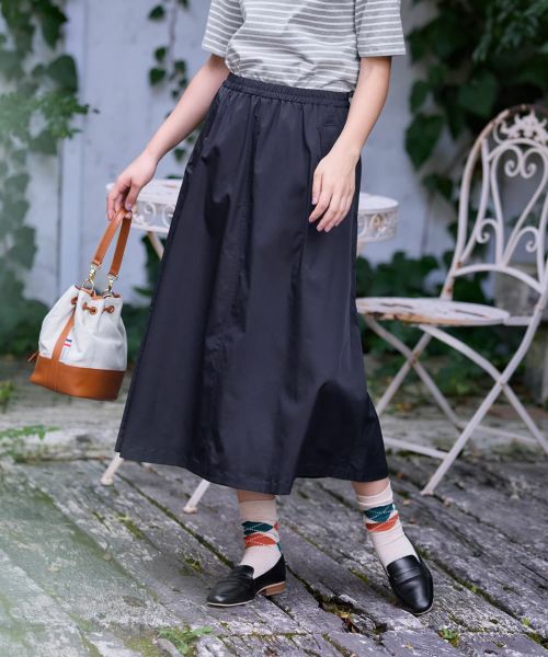 快適な穿き心地とすっきり見えを両立した、大人カジュアルなAラインスカート。前ウエスト左右のフラップポケットがアクセントになっており、伸縮性に優れた生地とウエスト総ゴム仕様でアクティブに動く日もストレスフリー。緩やかに広がるきれいなシルエットが、気になるレッグラインをナチュラルにカバーします。さらに天候の変化にも対応できる、はっ水加工が施されているのも嬉しいポイント。ワードローブの頼れる一枚としてシーズンを通して活躍するアイテムです。