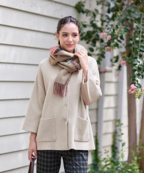 ブランド設立35周年を記念した、アニバーサリーモデルのスタンドカラージャケット。ふっくらとしたやや厚手のニットが身体を優しく包み込み、アウターとして十分な温もりを与えてくれます。首元をすっきりと見せつつスタンドカラーが上品な印象を演出。大きなパッチポケットがデザインにカジュアルなアクセントを添えています。リラックス感がありながらも品良く決まる、大人のデイリースタイルに最適な一着です。前スナップボタンで開閉可能。