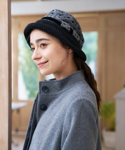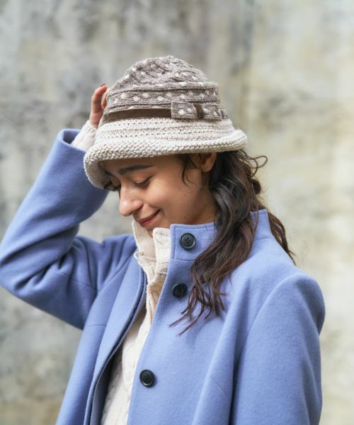 イタリア・トスカーナ地方発のハットメーカー「VECCHI」のニットハット。ドット柄の編地のクラウンとざっくりとした風合いのブリムのコンビネーションが特徴。素材はアクリルや毛をブレンドし、柔らかく暖かなかぶり心地を実現。ブリムの付け根にあしらわれたベルベット調のリボンが、ほんのりと上品なアクセントを添えます。職人の手仕事が感じられる、秋冬のフェミニンルックにぴったりなアイテムです。