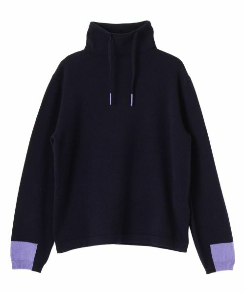 ポイント配色が目を惹くドロスト付きニットプルオーバー。