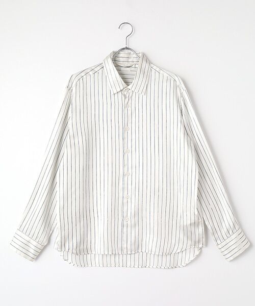 シーオール定番のレギュラーシャツでゆったりとしたシルエット。藤田染苑との協業により生まれた羽二重シルク×コットン生地。藍染の手捺染による揺らぎのあるストライプ柄です。