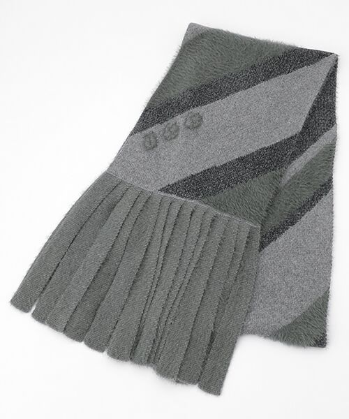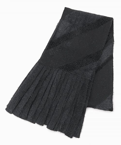 レジメンタル ニット ストール。特徴の異なる3種類の糸を使用したWジャガードニットです。柔らかい肌触りで、ギフトにもおすすめです。