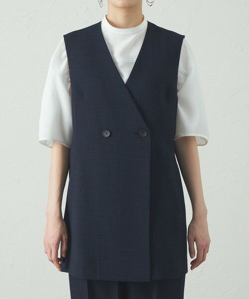 ワントーンでまとめたジレのスタイリングは、縦のラインが出るのでスッキリとしたモードな雰囲気が◎ メッシュのスカートのシアー感が暗い色味でも軽く見せてくれますよ♪ ちょっとした羽織になりがちなジレも、メインで着こなせます。【モデル身長:164cm】