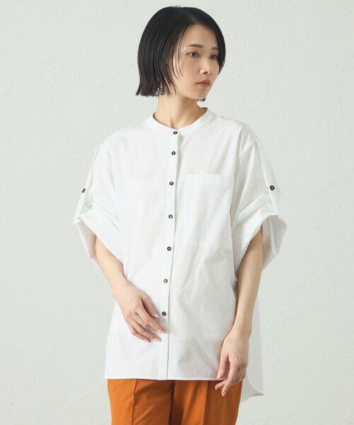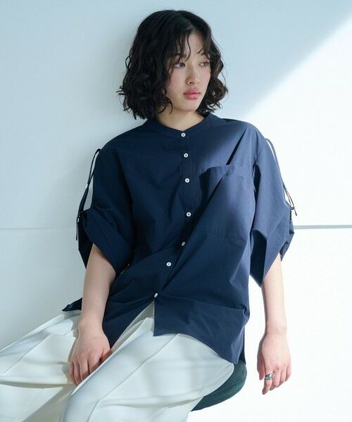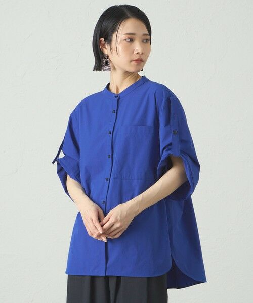 「雨の日でもおしゃれを楽しみたい」をコンセプトに、はっ水・UV加工を施したスタンドカラーブラウスです。