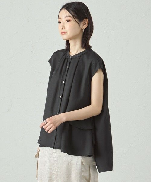 アシンメトリーデザインのフレンチスリーブブラウス。