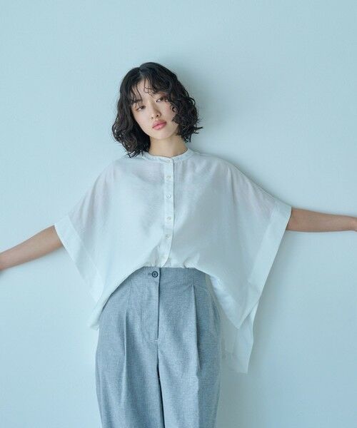 ゆったりとしたスクエアシルエットが目を引くデザインブラウス。