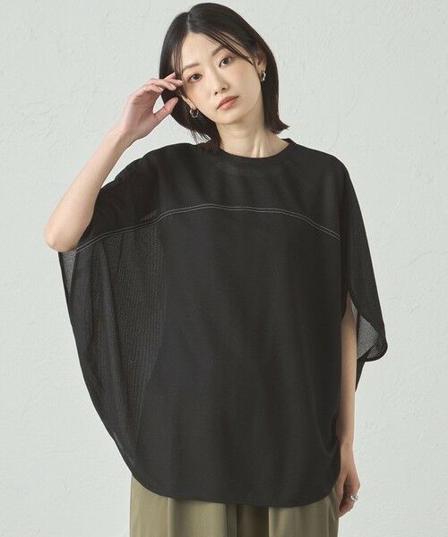 カラミ調のカットソー素材を使用したラウンドフォルムシルエットのカットソー。