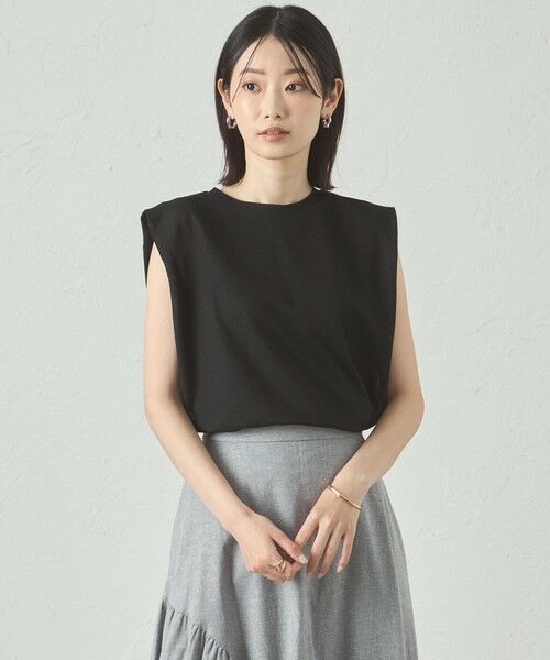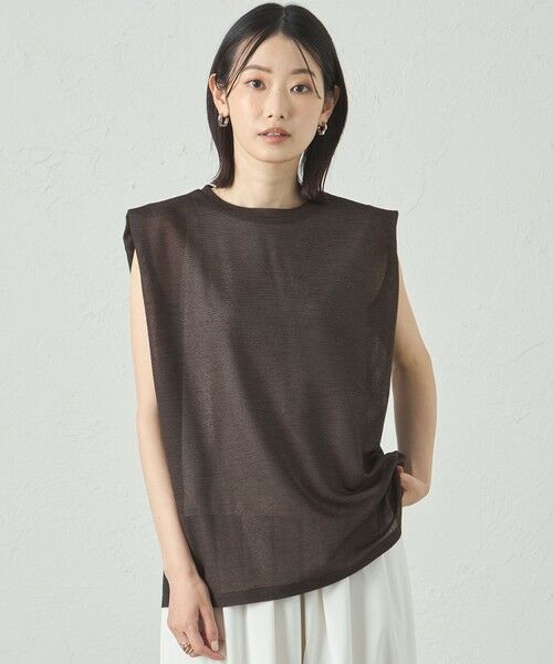 カラミ調のカットソー素材を使用したノースリブカットソー。