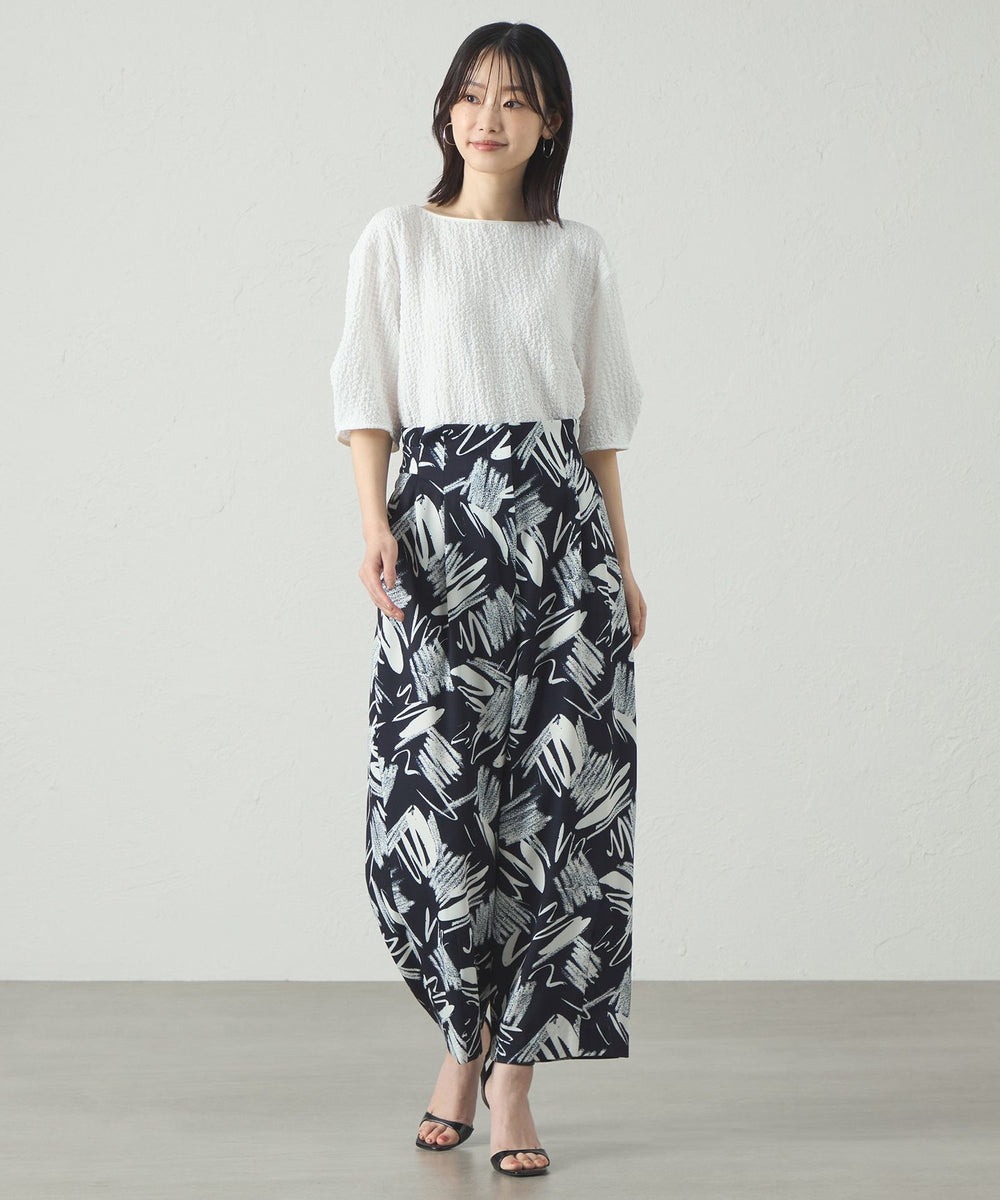後身頃はドライタッチな別素材のカットソーをコンビさせていてデザインを効かせています。ジャケットやカーディガンのインナーにも使いやすいアイテムです。