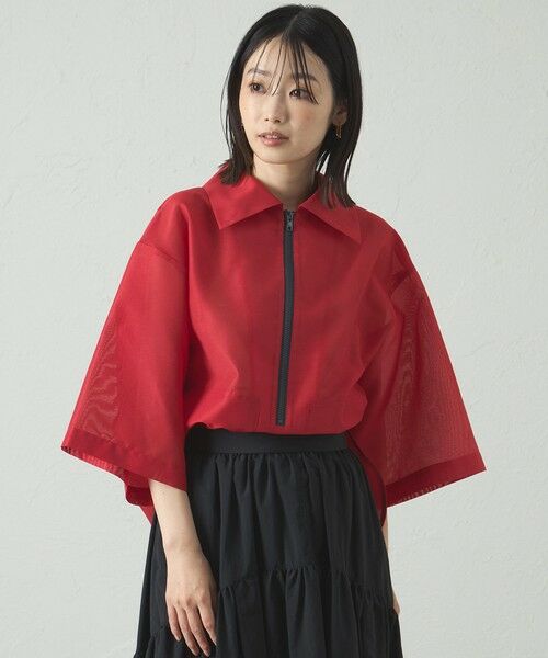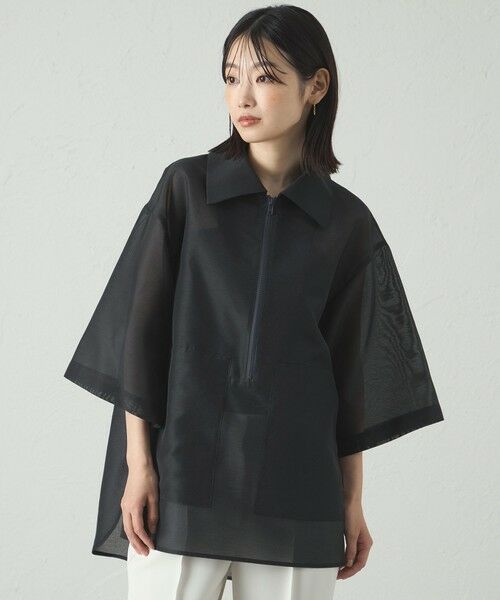 シアーな素材を使用したビックシルエットトップス。
